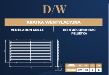Kratka wentylacyjna 220×120 biała z siatką PCV DOSPEL