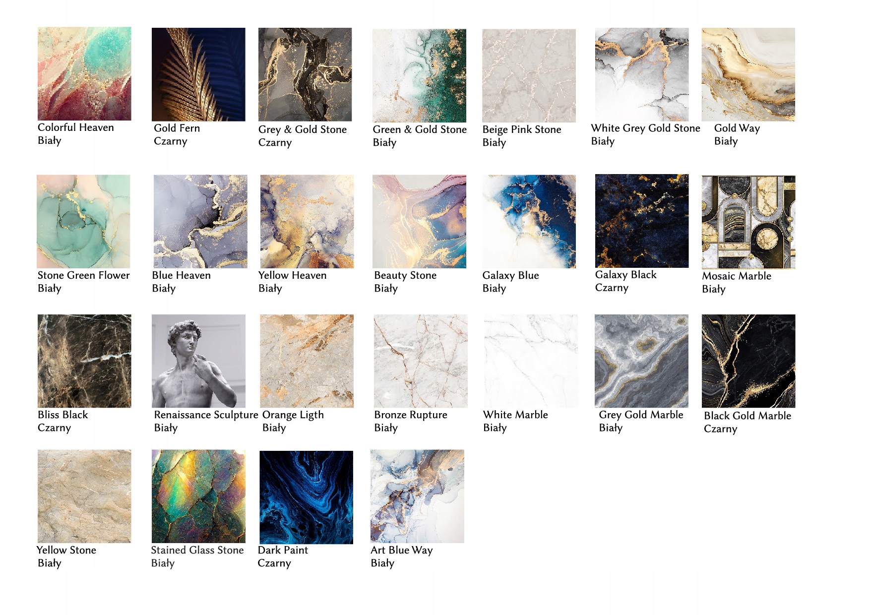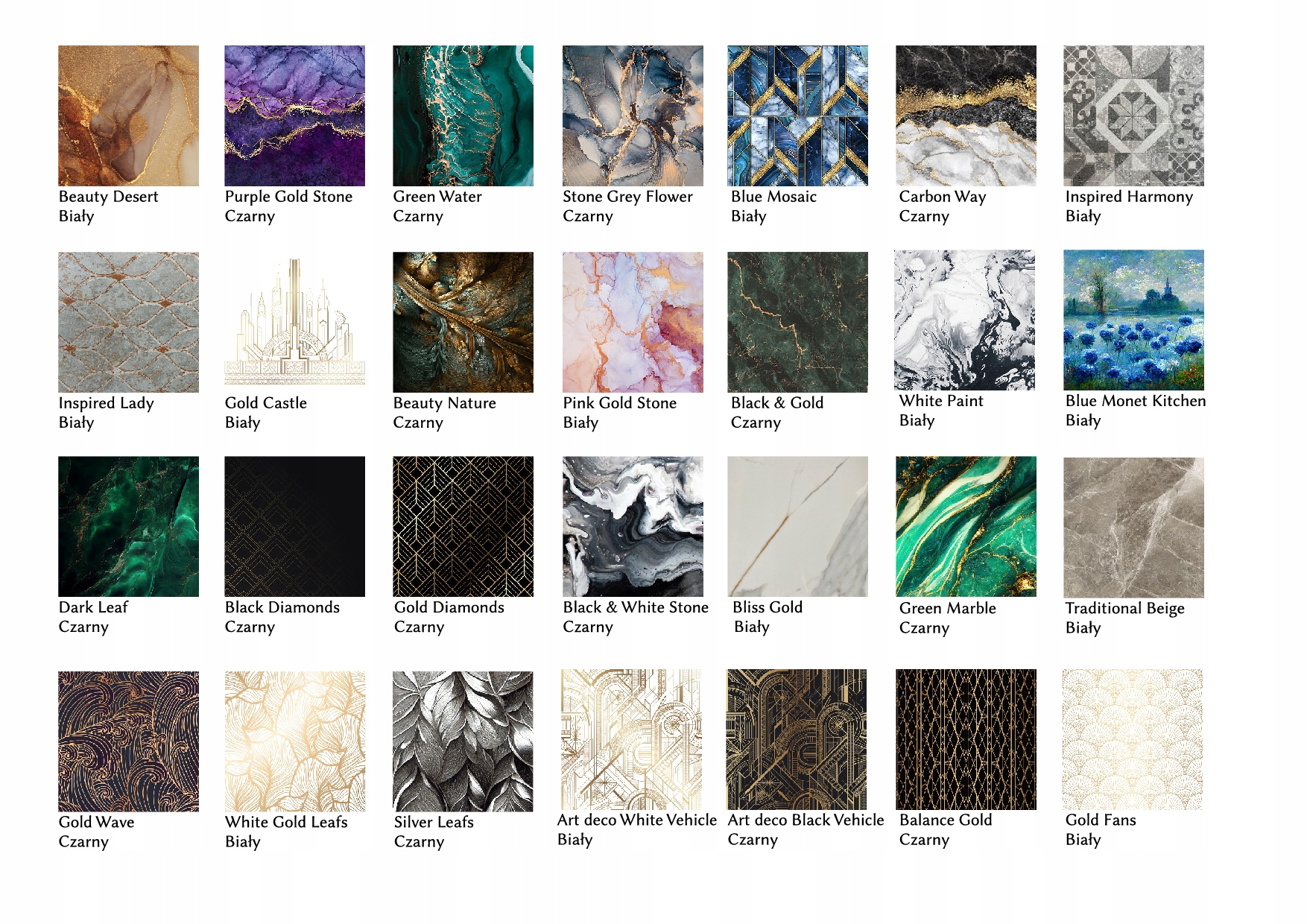 Prosimy o podanie wybranego wzoru w informacji do sprzedającego – należy podać angielską nazwę wzoru.